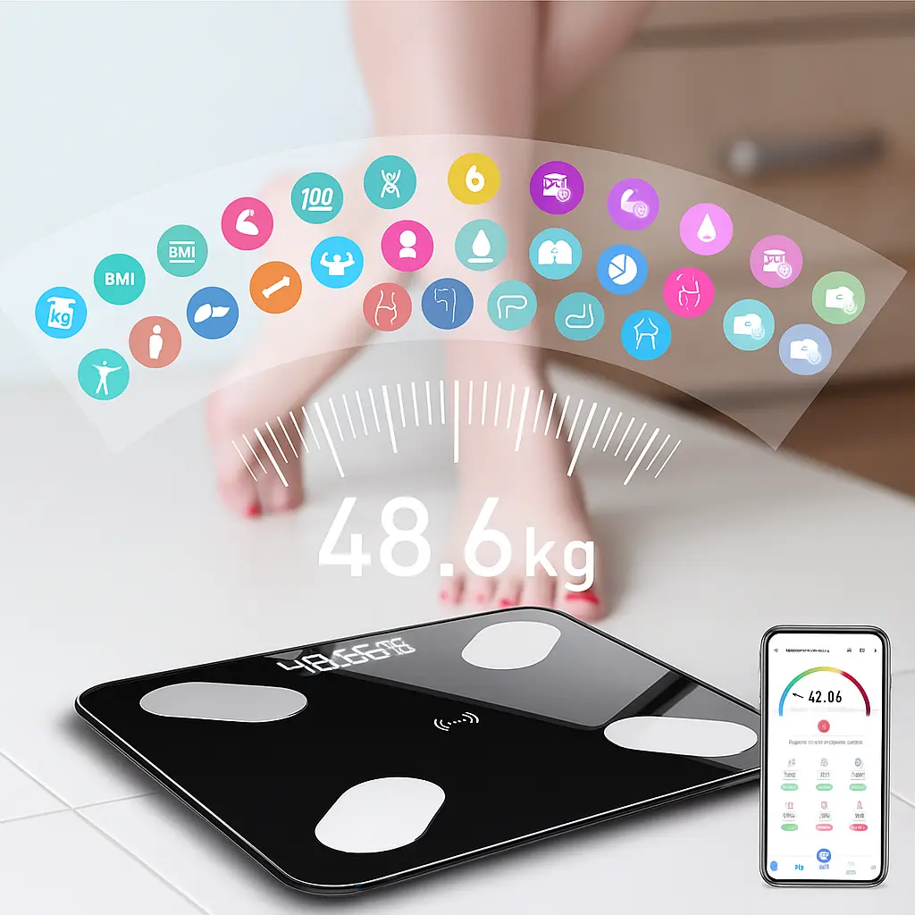 Transforma tu rutina con la Balanza Digital Inteligente, el aliado perfecto para cuidar tu cuerpo y alcanzar tus metas. Mide peso, grasa corporal, masa muscular, IMC, agua y más de 13 indicadores con total precisión. Su conexión Bluetooth permite sincronizar los datos automáticamente con tu celular, para que sigas tu progreso en tiempo real desde la app.