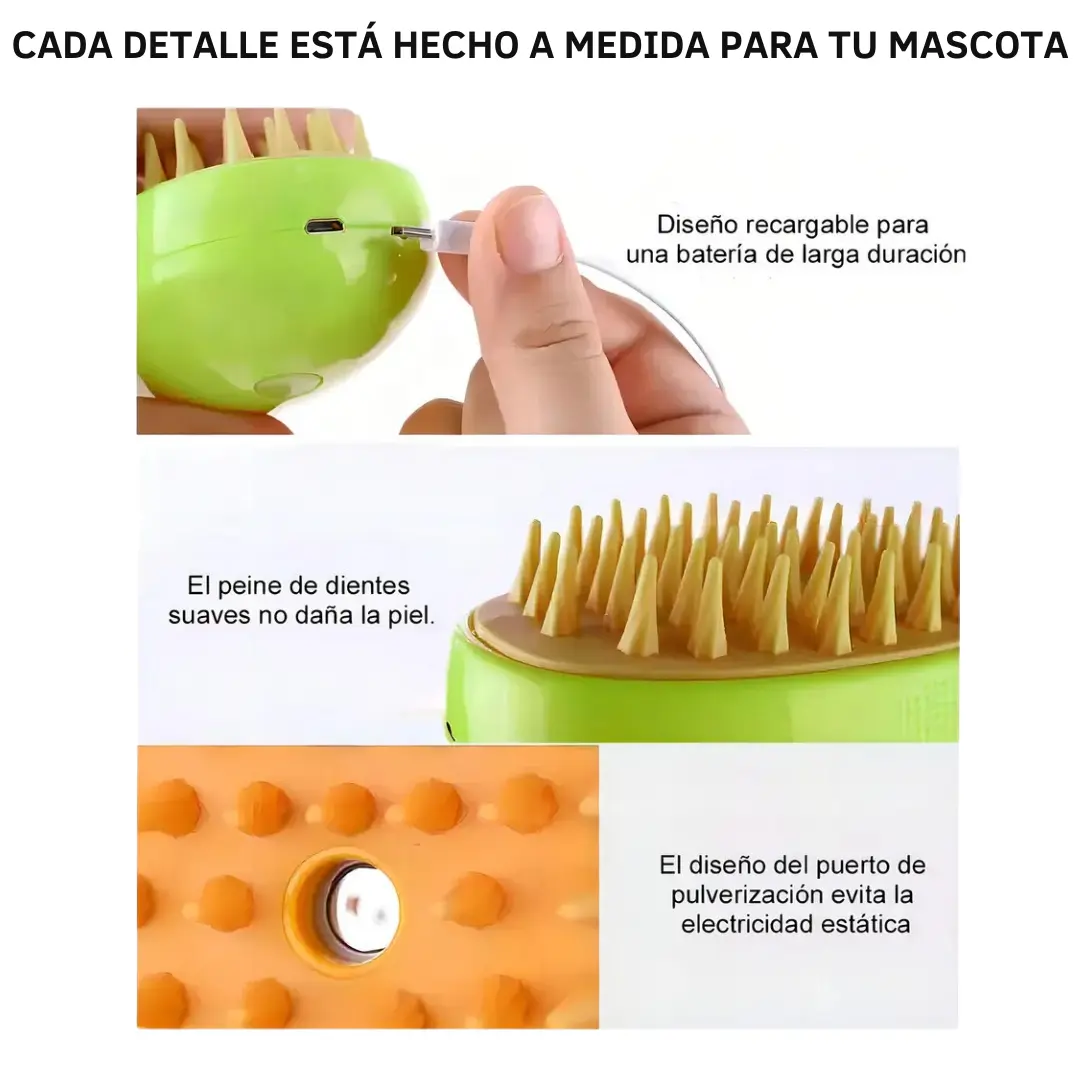 Dale a tu mascota el cuidado que se merece con este innovador cepillo vaporizador, con un diseño que actua de forma eficiente y sin causar molestias.