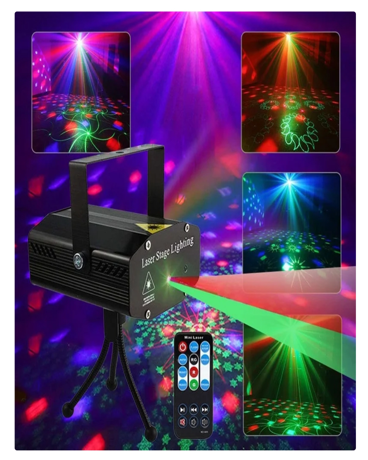 ¡Lleva tu fiesta al siguiente nivel con el mini proyector láser para iluminación de escenarios!