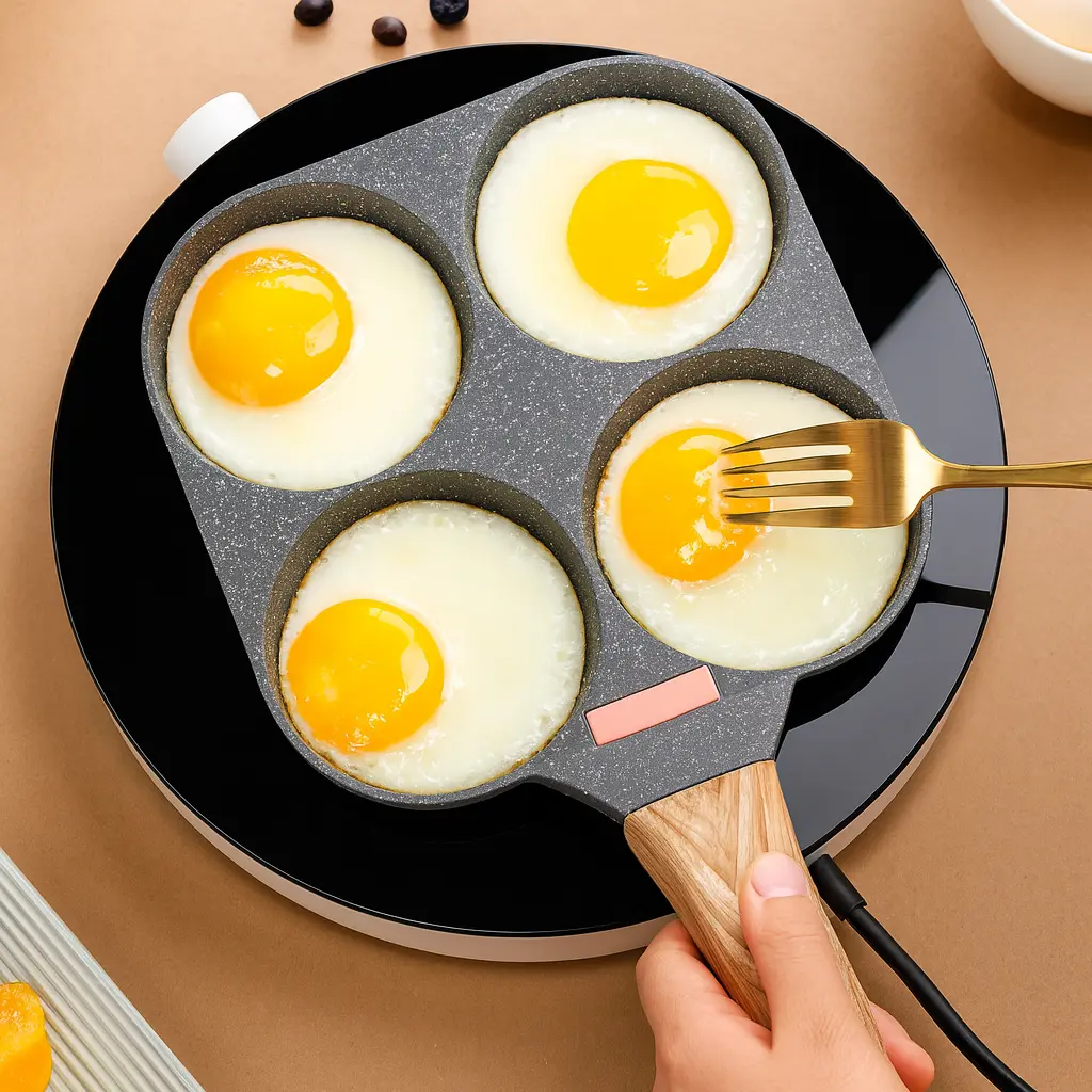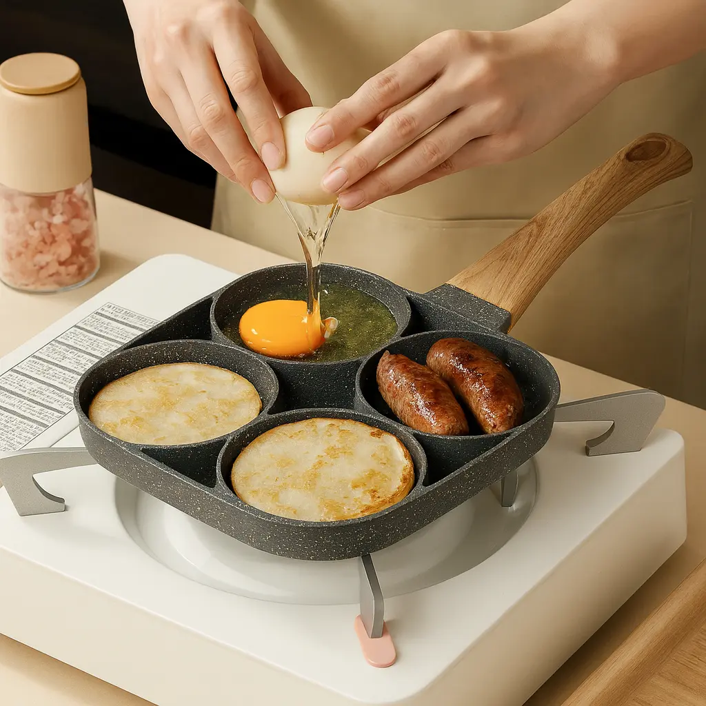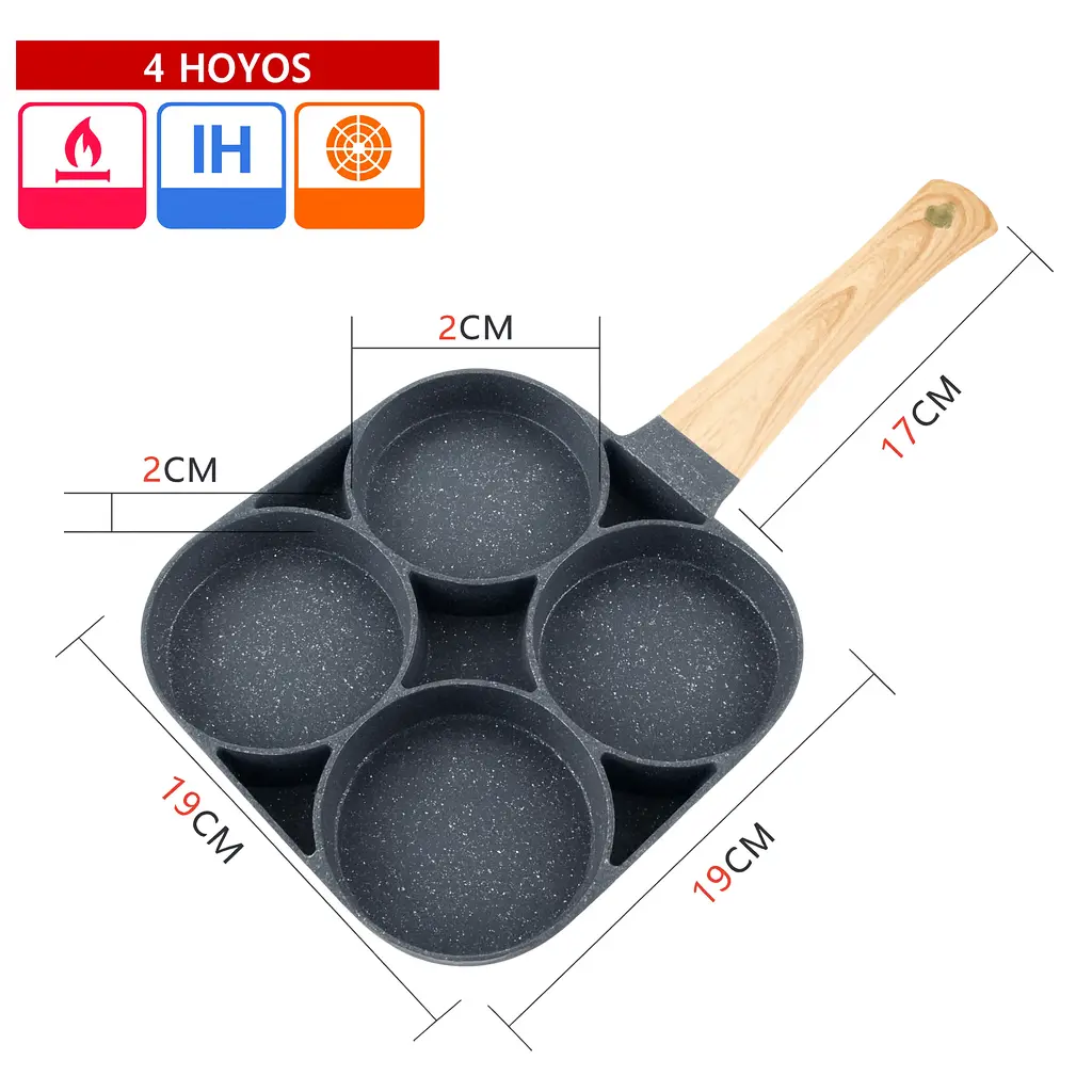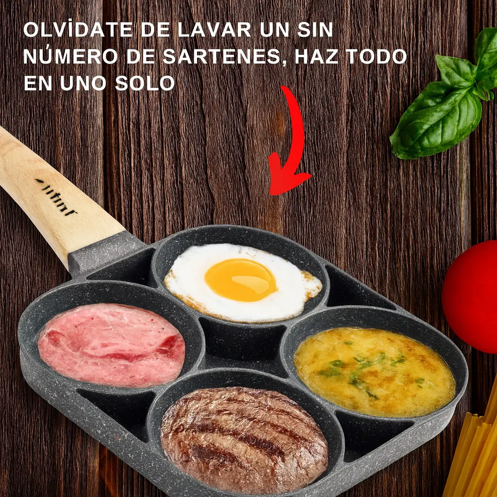 ¡Olvídate de usar mil sartenes! Con esta sartén antiadherente de 4 compartimentos podrás preparar huevos, carnes, panqueques y más al mismo tiempo. Ahorra tiempo, energía y limpieza, disfrutando de una cocina práctica y deliciosa en cada uso.