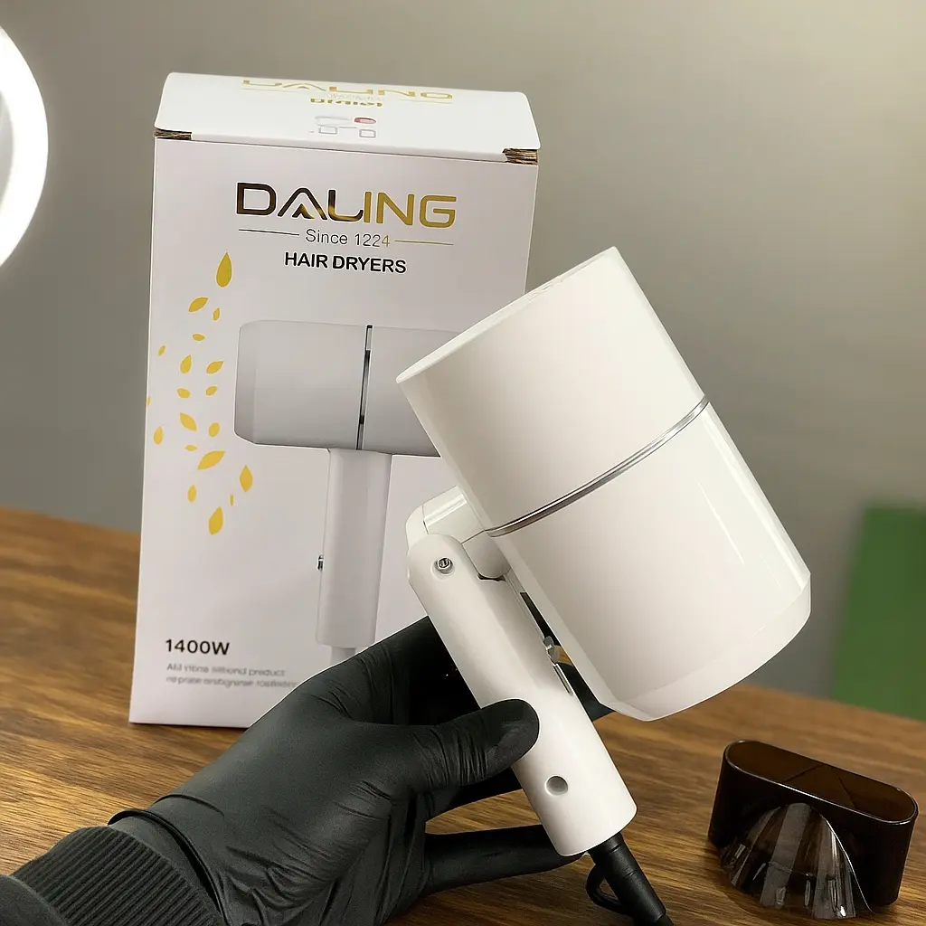 El secador Daling combina potencia, elegancia y practicidad. Con un motor de 1400 W y tecnología de aire iónico, seca el cabello de forma rápida y sin dañarlo, dejándolo suave y brillante. Su diseño plegable y liviano lo hace ideal para viajes o uso diario. Fabricado con materiales resistentes y un acabado moderno, incluye boquilla concentradora para un secado más preciso.